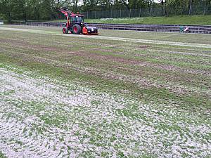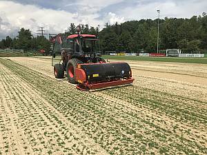 Das Aerifizieren (= Belüften) beseitigt Verdichtungen an der Tragschichtoberfläche