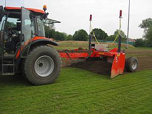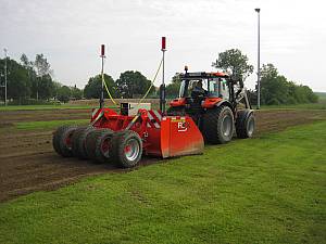 Seit 2018 haben wir ein eigenes Laserplanierschild um Plätze mit starken Unebenheiten mittels Rasentragschichtsubstrat aufzufüllen und der Topologie oder nach Ihren Wünschen zu verebnen.